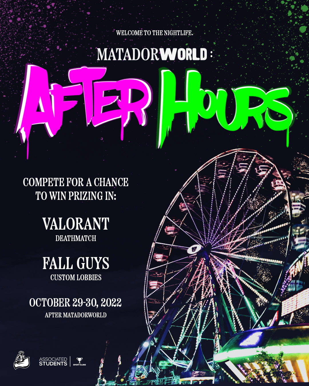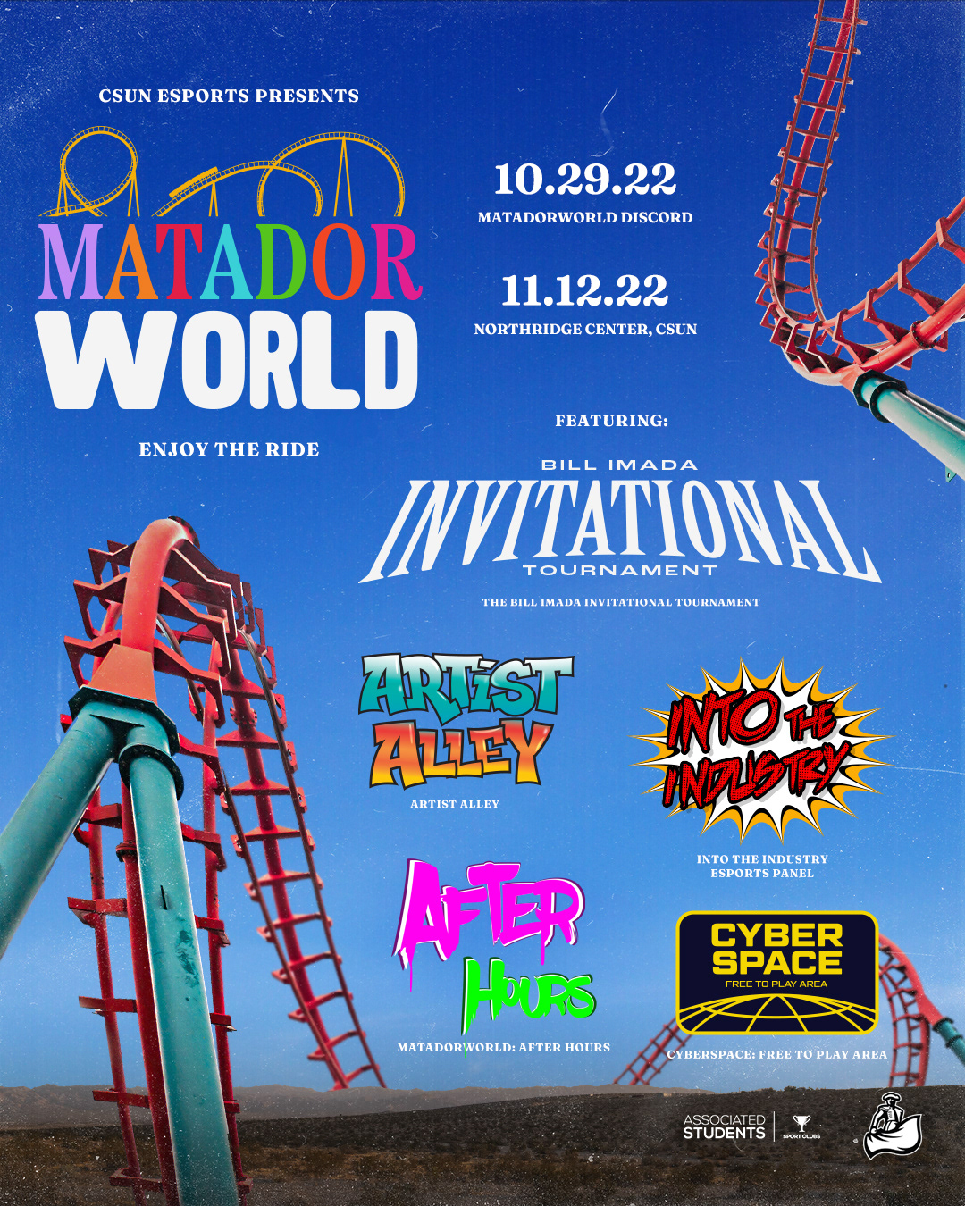 MatadorWorld 2022 was the inaugural video game event hosted by CSUN Esports. The event was open to the general public and featured many attractions, headlined by a video game tournament in Call of Duty, Overwatch (Activision Blizzard), and VALORANT (Riot Games). I was in charge of the branding as well as developing all promotional materials, digital and print for this event.