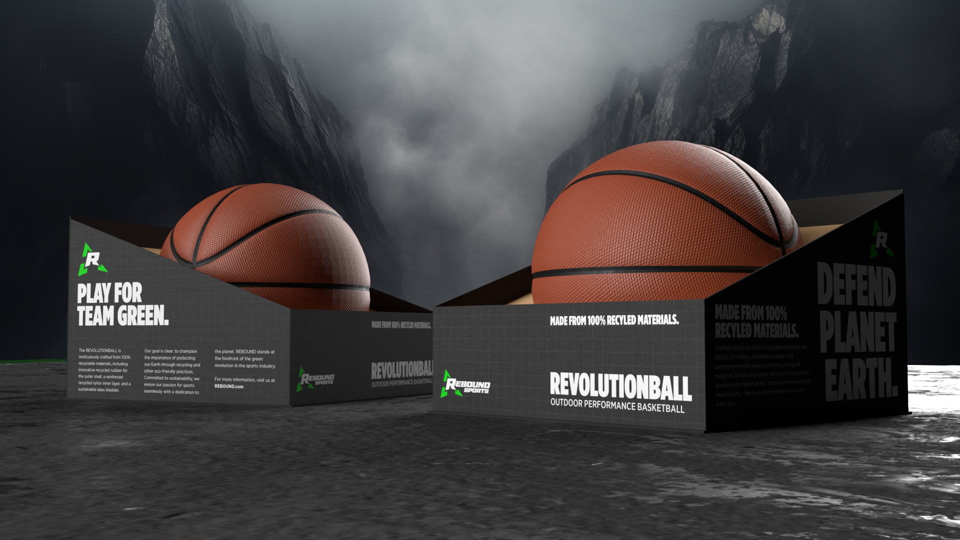This concept was created as part of a university project which showcases branding, logo and packaging design. REBOUND is an American athletics company that specializes in the manufacturing of athletics equipment and clothing made of exclusively eco-friendly, biodegradable, and recycled materials. The company's goal is to spread awareness about the importance of sustainability and promote environmentally ethical practices.